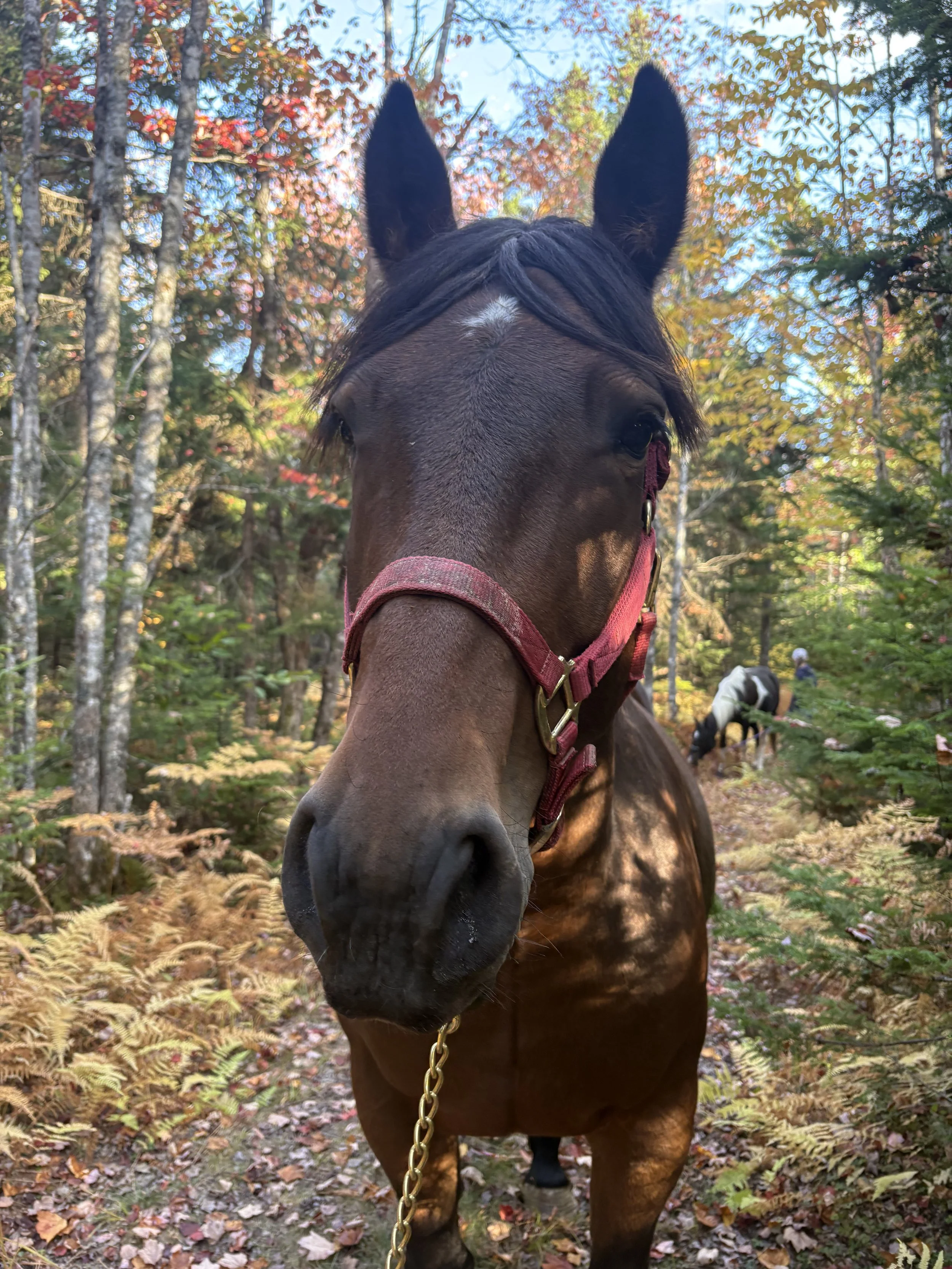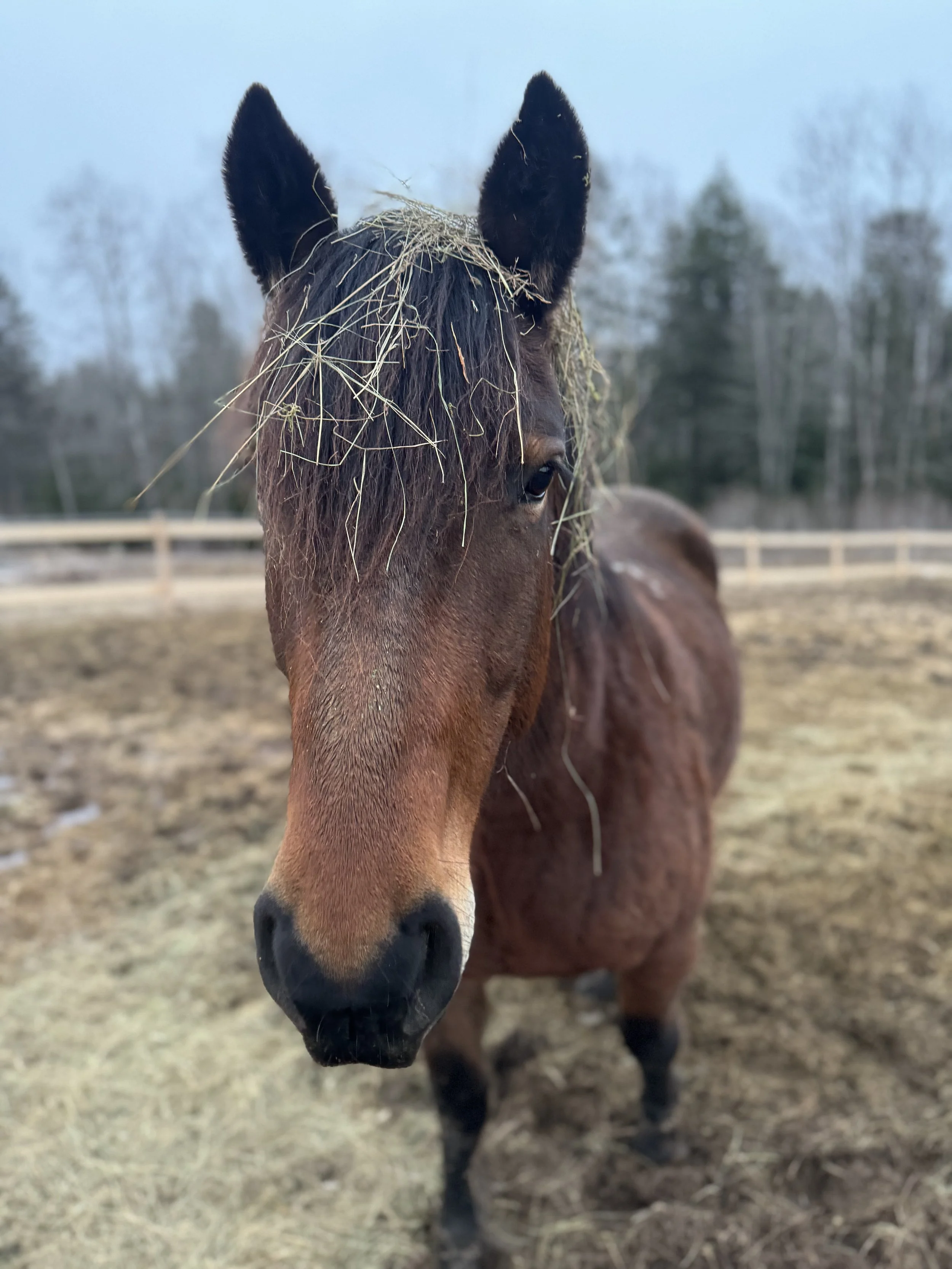 Penny is a 5 year old draft cross who stands just under 16hh. Penny is both smart and sassy, and is slowly learning to trust people again after having a hard start in life. Penny is currently in the process of being trained to become more comfortable under saddle, and is the sweetest girl around. She loves connection which makes her a great partner for equine assisted therapy.